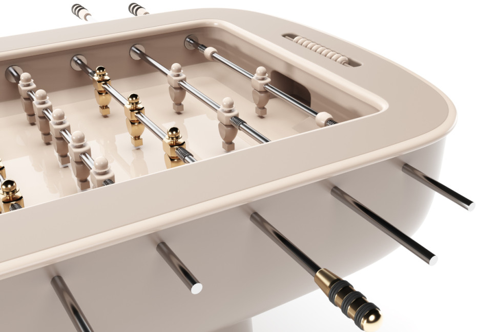 Parmi les produits luxueux de Vismara Design se distingue le goût des années 50 de la Table de Baby-Foot Oskar, réalisée par Vismara et Bellavista&Piccini.