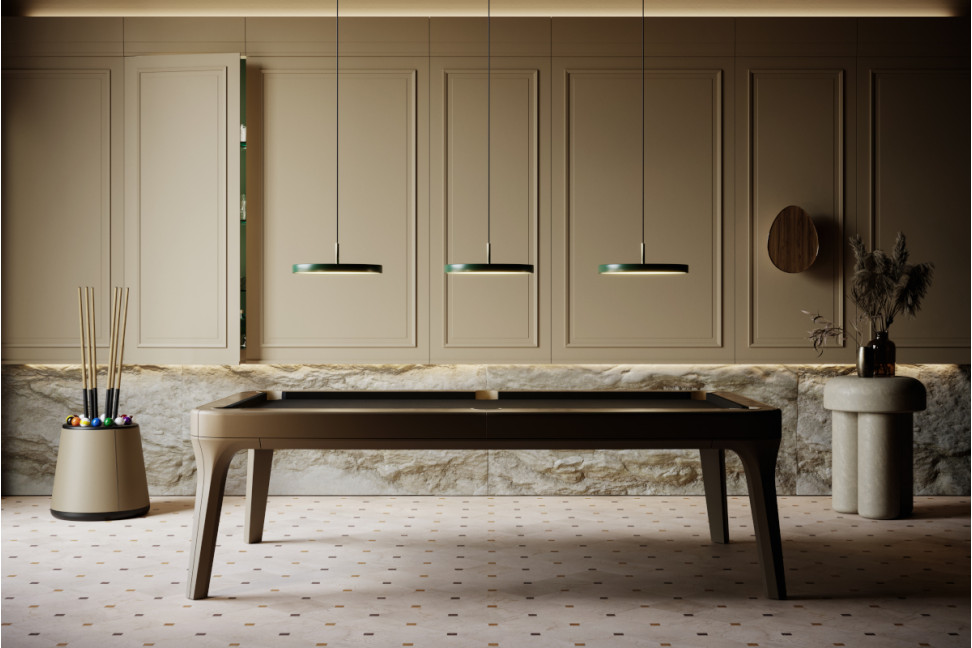 Le point fort de la table de billard Dandy est sans aucun doute son revêtement intégral en cuir, qui recouvre même les poches. Le cuir offre non seulement une sensation extraordinaire de douceur, mais donne au produit une touche sophistiquée qui s'harmonise parfaitement avec l'esthétique contemporaine. Comme accessoire utile, Vismara réalise un plateau en bois, laqué ou en essence, qui permet de transformer la table de billard Dandy en une élégante table à manger.