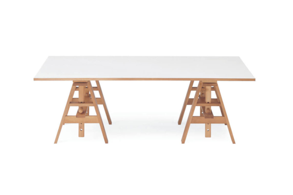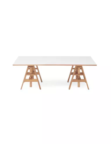 Le bureau Leonardo de Zanotta, conçu par l'esprit créatif d'Achille Castiglioni, est une table de travail qui évoque justement l'archétype du travail sur tréteaux.