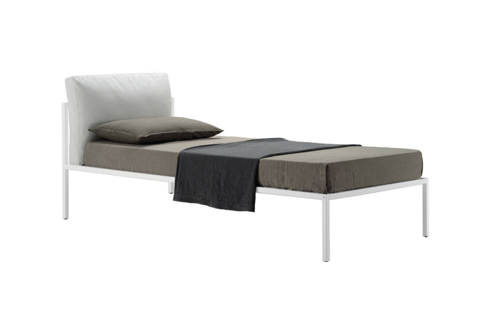 Le lit Nyx de Zanotta représente un hymne à la légèreté et à la simplicité, avec une touche d'élégance et de raffinement en plus dans la version avec des coussins de tête rembourrés.