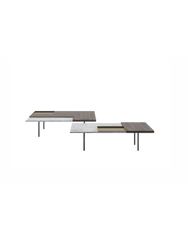 L'accostamento di materiali diversi conferisce ai tavolini Moodboard di Acerbis siglati Massimi Mariani, un movimento visivo che rompe la staticità della struttura impostata su forme lineari e geometriche, giocando sul contrasto tra nuance e consistenze diverse, quasi come fosse una tavola compositiva in cui l'autore sperimenta accostamenti nuovi e originali.