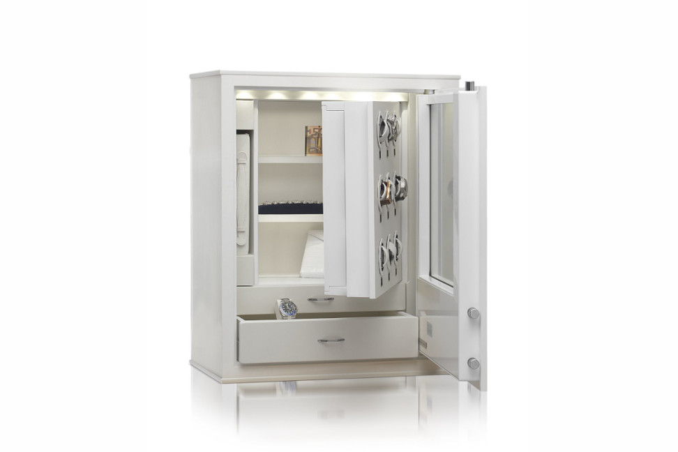 L'azienda fiorentina Agresti, che da anni produce esclusivi mobili di pregio, realizza il Cassettone blindato Il Forziere delle ore, in acero occhiolinato bianco o in ebano, entrambi con finitura lucida e rivestimento in pelle in tinta, interni in ultrasuede, accessori in ottone con finitura rutenio e illuminazione interna. Il Forziere delle ore è un accessorio sicuro grazie a all'apertura biometrica e alla chiave di emergenza, ai vetri antiproiettile e antieffrazione e alla possibilità di ancoraggio al muro tramite tasselli in acciaio. Questo complemento è organizzato con nove innovativi meccanismi svizzeri per la carica di orologi automatici, due cassetti, una busta in pelle da viaggio porta orologi e uno scomparto segreto.
