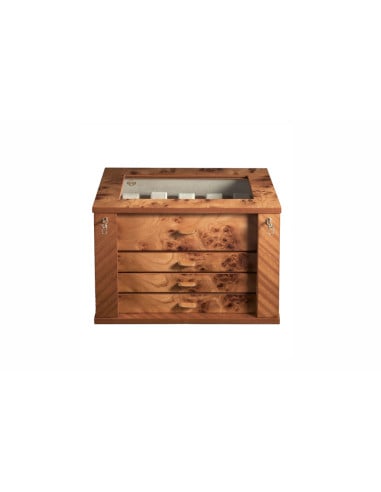 La collezione porta gioielli di Agresti include moltissimi prodotti come il cassettoncino Il mio tempo, che come il nome stesso suggerisce è un perfetto contenitore per custodire al sicuro i vostri orologi. Disponibile sia in radica che in ebano lucido, questo pratico oggetto di design è organizzato per racchiudere 28 orologi su sopporto e distesi. Il sistema di chiusura a chiave completa il quadro di sicurezza del cassettoncino Il mio tempo, interamente realizzato nei laboratori fiorentini da sapienti artigiani.