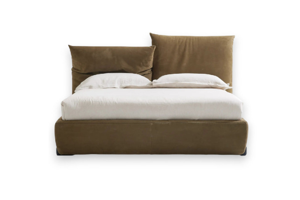 Il letto Reverso di Alto progettato da N Lab, con i suoi cuscini pieghevoli e soffici crea composizioni dinamiche.