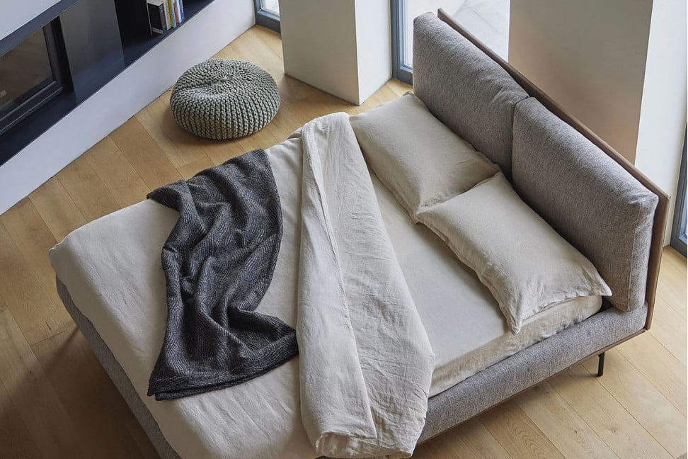 Rivestimento sfoderabile: Il letto è dotato di un rivestimento completamente sfoderabile per facilitare la manutenzione. I cuscini sono attaccati alla testata con cerniere invisibili e hanno un rivestimento autonomo.