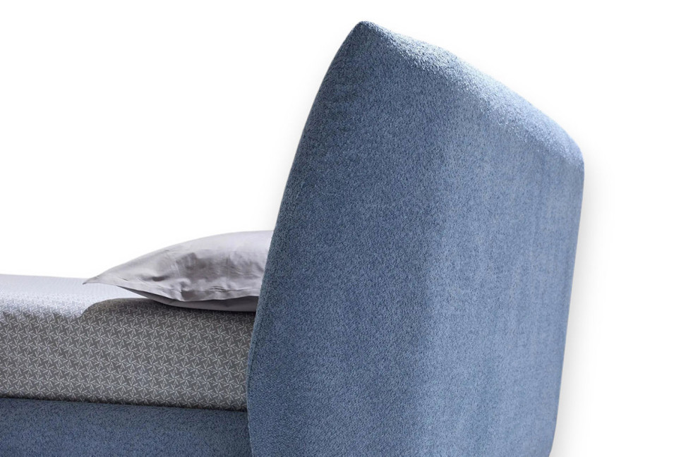 Caratteristiche tecniche: La testata avvolgente è realizzata con una struttura curva in particelle di legno, rivestita con poliuretano espanso e ovatta. Il giroletto è composto da particelle di legno rivestite con poliuretano espanso e ovatta, il tutto foderato con una cuffia in vellutino con logo.