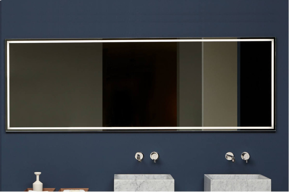La specchiera Fila del noto brand Antoniolupi disegnata dallo stesso AL Studio, è caratterizzata da un vetro dallo spessore di 4mm a filo lucido con illuminazione a led luce bianca e una fascia perimetrale sabbiata di 1,5cm.