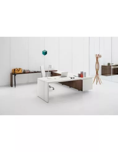 La scrivania direzionale Ar.tu gioca sull'accostamento di volumi puri e materiali diversi per offrire un elemento di arredo dallo stile elegante e senza tempo, che riesce ad adattarsi bene a qualsiasi ambiente lavorativo, dal più classico al più moderno.