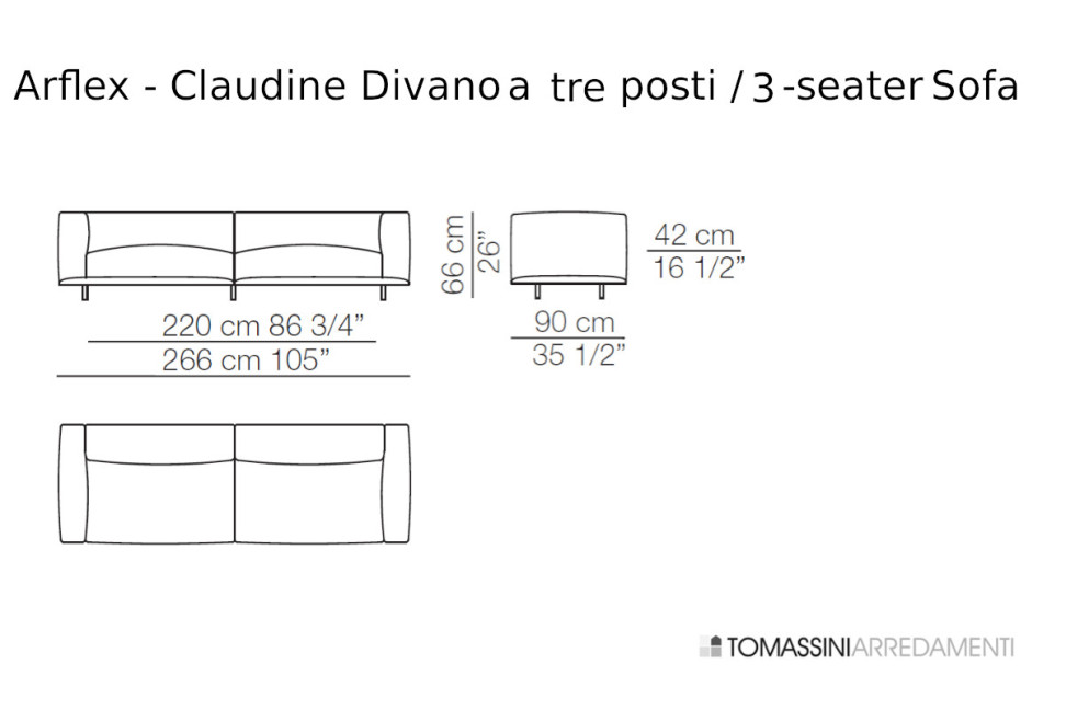 Il divano modulare Claudine di Arflex è disponibile in diverse varianti lineari e in numerose composizioni. Tra le dimensioni lineari abbiamo: