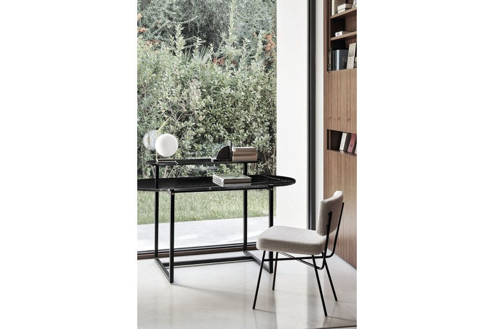 Nata nel 1954 come sedia da ufficio, l'iconica sedia Elettra, firmata dallo studio B.B.P.R, si adatta perfettamente a qualunque ambiente. Arflex la propone per il living, che viene arricchitto dal suo design essenziale e moderno: il basamento è in metallo laccato nero e il rivestimento può essere in tesuto e in pelle.Arflex