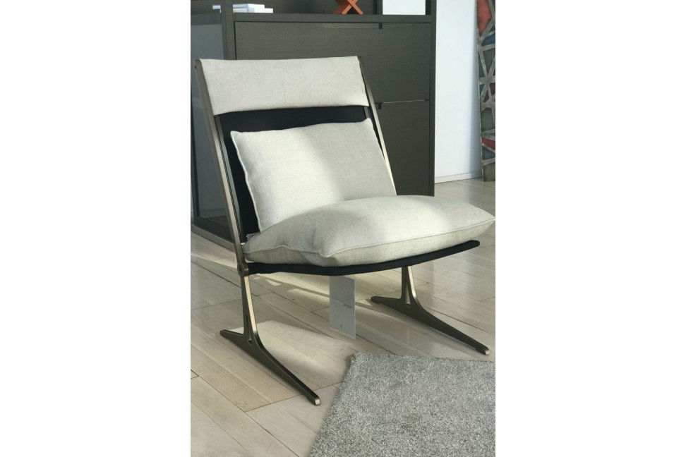 La poltrona Barracuda, in offerta expo nel nostro showroom, è un raffinato complemento d'arredo dalle linee sottili e leggere, realizzato con base color titanio e rivestimento in tessuto beige.