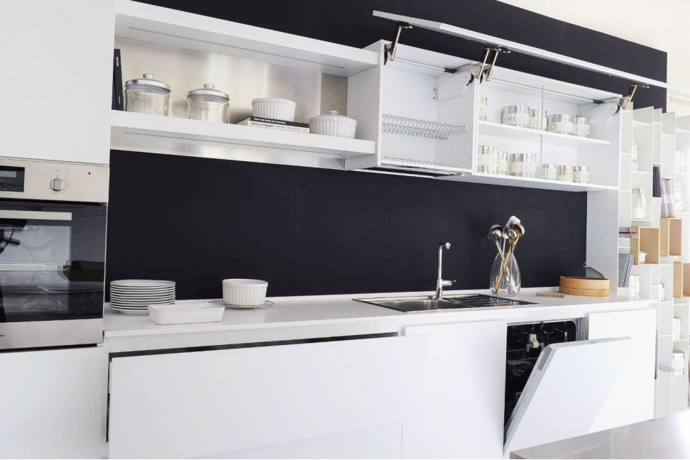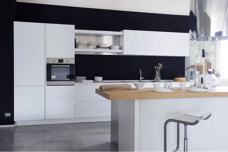 La cucina AK_06, in offerta expo nel nostro showroom, è un progetto che unisce forme pure e semplicità compositiva, offrendo uno spazio funzionale ed estremamente vivibile. La cucina è realizzata con basi, colonne e pensili con anta di spessore cm 2,2, e bordo del canale Step in melaminico supermatt bianco. Il sistema di apertura con gola piatta e zoccolo cm.12h in alluminio bianco dona un tocco di eleganza alla cucina AK_06.