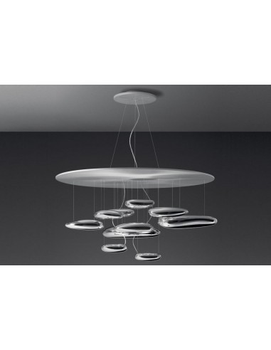 Il designer di fama internazionale Ross Lovegrove, in collaborazione con il brand italiano di illuminazione Artemide, è il genio creativo autore della collezione di lampade Mercury, simbolo di un inedito modo di esprimere e rappresentare la bellezza della natura.La lampada a sospensione Mercury presenta una struttura in alluminio e materiale termoplastico dalla configurazione molto particolare: essa è infatti composta da un disco sottile in alluminio al quale sono appesi degli elementi di diverse dimensioni che ricordano la forma di sassi levigati e che sembrano fluttuare nell'aria. La finitura metallizzata riflette la luce e fa da specchio ai colori dell'ambiente circostante, creando un accattivante effetto visivo e degli affascinanti giochi di luce. Mercury è disponibile anche nella versione a soffitto e “mini”, dalle dimensioni ridotte.