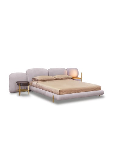 La struttura del letto Stone è realizzata con cura e attenzione ai dettagli. Il giroletto è composto da quattro fasce che assicurano una stabilità ottimale e una lunga durata nel tempo. I moduli centrali della testata sono fissati saldamente alla parete, garantendo una solida struttura di supporto. I piedini, realizzati in metallo ottonato satinato con una delicata finitura opaca, aggiungono un tocco di lusso e stabilità alla struttura complessiva. Per quanto riguarda l'imbottitura, il letto Stone offre un comfort eccezionale grazie all'uso di poliuretano espanso a densità differenziata. Questo materiale di imbottitura assicura un sostegno adeguato al corpo durante il riposo. La possibilità di sfoderare il rivestimento consente una facile pulizia e manutenzione, garantendo che il letto rimanga bello e accogliente nel corso del tempo.