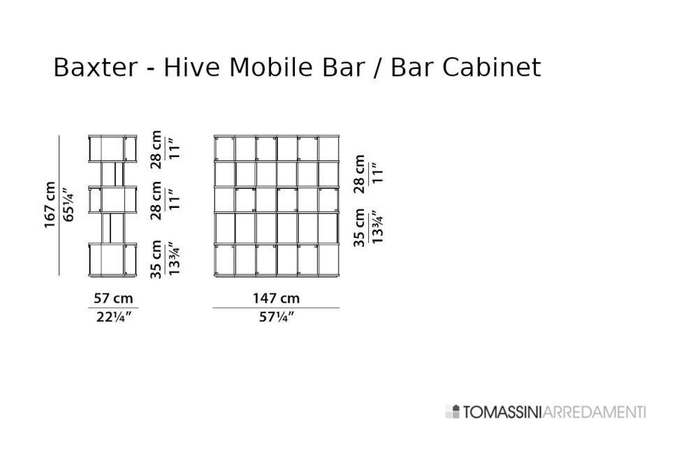 Il mobile bar Hive è disponibile nelle seguenti dimensioni:cm.147x57x167h.