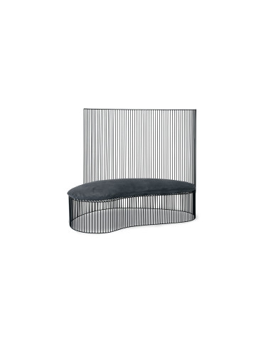 Ginestra presenta infatti una struttura realizzata interamente in tondino di metallo verniciato nero opaco, e comunica un estremo senso di leggerezza. Questa qualità ricorre spesso nei lavori suo designer Sciortino, cui obiettivo è quello di realizzare dei lavori in cui la materia assume fattezze eteree. A questa poltrona viene abbinata un cuscino ricoperto in cuoio. Della linea Ginestra fa parte anche una sedia.