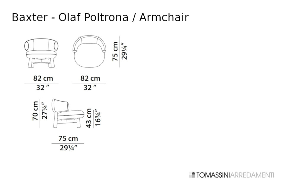 La Poltrona Olaf è disponibile nella seguente dimensione: cm. 82x75x70h.