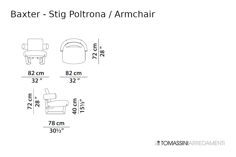 La Poltrona Stig è disponibile nella seguente dimensione: cm. 82x78x72h.