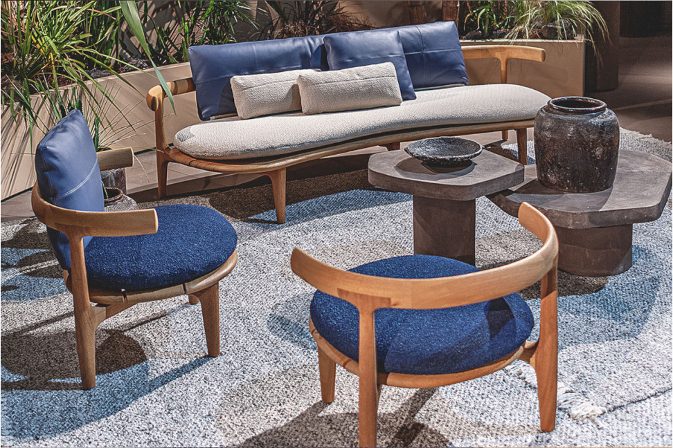 Presentata in occasione del Salone del Mobile 2022 di Milano, questa poltroncina è realizzata con una struttura in iroko naturale sabbiato che presenta dei braccioli levigati. La seduta è resa ancora più confortevole grazie a un cuscino decorativo sfoderabile in poliuretano espanso con rivestimento in tessuti e pelli studiati per l'esterno. Il design elegante e raffinato della poltroncina Himba dona all'ambiente outdoor un aspetto accogliente e rilassato.