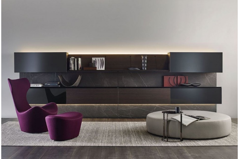 Il contenitore Pab di B&B Italia è realizzato in diverse versioni e finiture. Si tratta di un elemento molto versatile: può avere infatti la funzione di libreria e di piano d'appoggio.