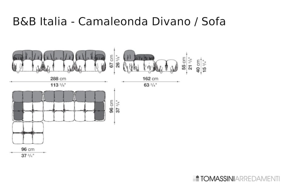 Dimensioni: cm.288x162x67h (altezza seduta cm.40). Comprende: