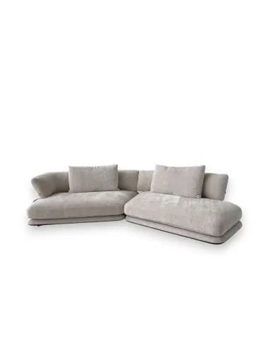 Il divano Cocùn beige in offerta Expo nel nostro showroom è composto da due moduli e due cuscini schienale. Il rivestimento è in tessuto color beige. La base è verniciata cromata nera.