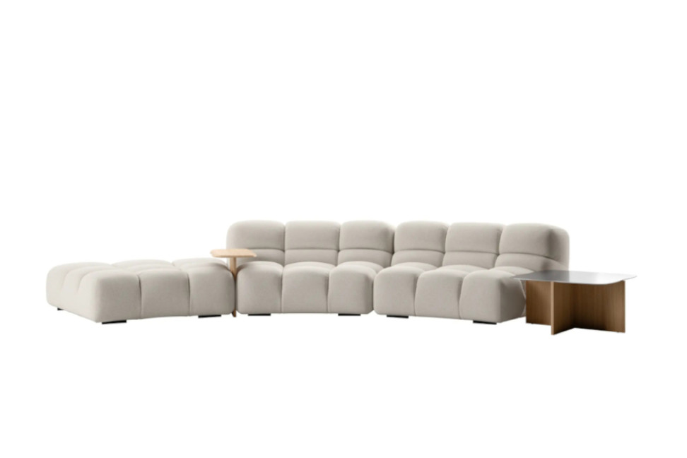 Il divano Tufty-Time 20 di Patricia Urquiola, rispetto alla versione originale del 2005 offre ancora più comfort e versatilità, l’introduzione di un modulo curvo amplia il potenziale del sistema, dando vita a configurazioni ancora più fluide e conviviali, ideali sia per ambienti residenziali che per spazi contract. Le linee sono morbide, i volumi generosi, perfetti per arredare ambienti moderni con stile e personalità. Il sistema modulare permette di creare composizioni su misura, ideali sia per spazi ampi che per living più raccolti. Ogni dettaglio è pensato per un’esperienza di relax totale, grazie anche all’uso di materiali innovativi e sostenibili.