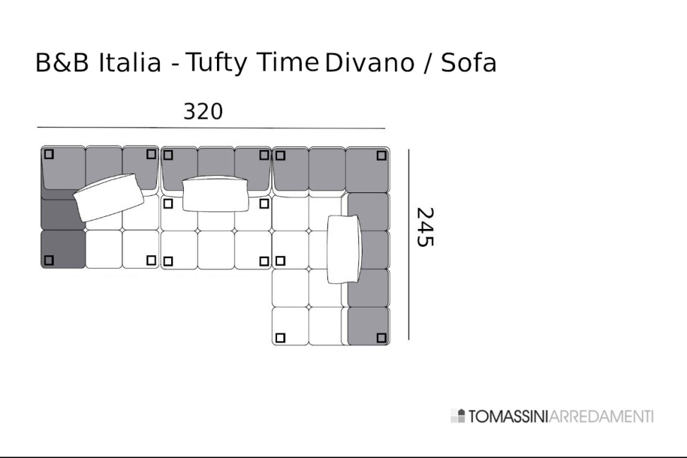 Dimensioni: cm.320x245x63h (altezza seduta: cm.35). Composto da: