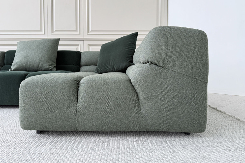 n.1 elemento terminale sinistro con bracciolo basso in tessuto verde chiaro (cm.109x109x63h);