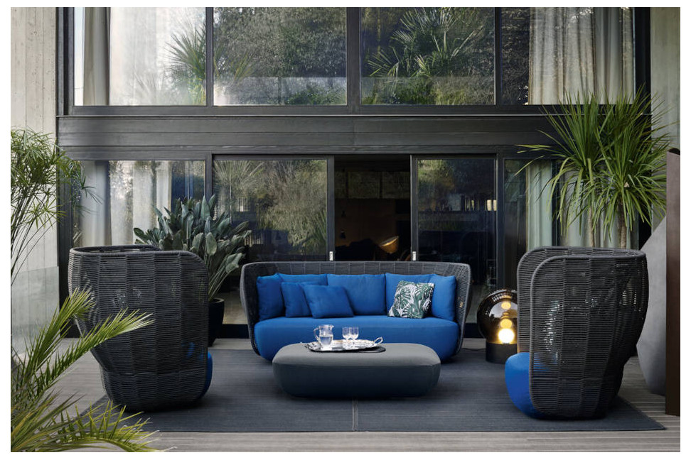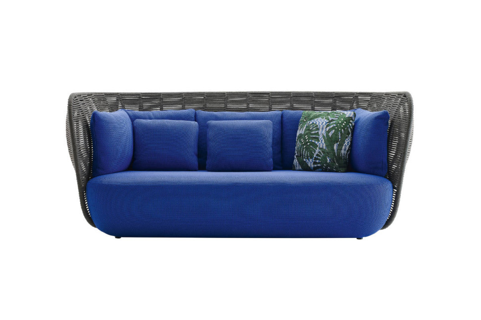 Eleganza e sinuosità sono gli elementi che contraddistinguono il divano per esterno Bay, progettato dai designer di fama internazionale Nipa Doshi e Jonathan Levrier , presentato fra le novità di B&B Italia Outdoor a IMM Cologne 2018. Una raffinata struttura intrecciata in propilene accoglie dei morbidi cuscini per una sensazione di relax e benessere. Il rivestimento, in fibra di poliestere con trattamento idrorepellente estremamente resistente agli agenti atmosferici, è disponibile in vari colori, così come i cuscini realizzati a tinta unita o nella versione a fantasia, che vanno a impreziosire il divano donando carattere ed eleganza.