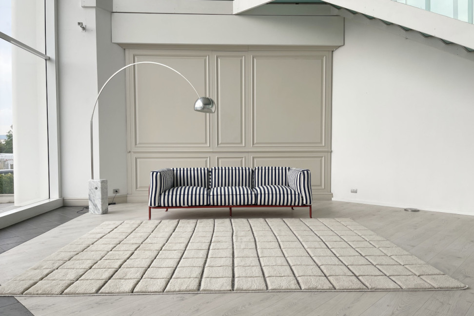 Il divano Borea in Offerta Expo nel nostro showroom è caratterizzato da una struttura tubolare in alluminio e un rivestimento in tessuto.