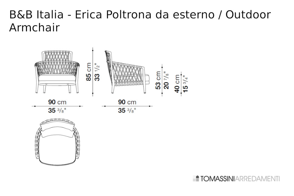 Dimensioni: cm. 90x90x85h (altezza seduta: cm.40). Include: