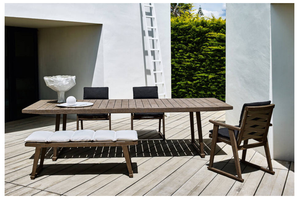 La sedia per esterno Gio firmata da Antonio Citterio per B&B Italia è un gioiello di design che prende il suo nome dall'armonia che crea tra il classico e il contemporaneo, rispecchiando l'essenza di una fusione raffinata. La sedia per esterno Gio è un compagno perfetto per i tavoli della sua omonima serie, condividendo la struttura in massello di teak dalla speciale finitura antique grey. Questa finitura conferisce al legno un affascinante aspetto vissuto, con riflessi grigio argento che narrano storie di avventure trascorse e creano un connubio di bellezza e resistenza. La sedia per esterno Gio rappresenta un capolavoro di design in grado di coniugare con abilità l'eleganza intramontabile dei dettagli classici con le esigenze funzionali e visive del contemporaneo. La scelta del teak per la struttura non solo conferisce alla sedia una robustezza naturale e una durata eccezionale, ma incarna anche una raffinata attenzione alla tradizione artigianale. La finitura antique grey, poi, trasforma il legno in un vero e proprio affresco di tonalità grigio-argento, evocando una sensazione di storia e autenticità, come se il tempo avesse plasmato con delicatezza ogni curva e angolo.