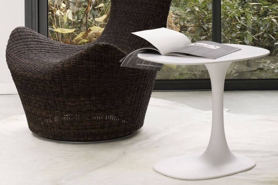 Il tavolino Awa di B&B Italia Outdoor ha design moderno e linee arrotondate. E' stato progettato per essere funzionale anche in outdoor grazie a un nuovo tipo di Cristalplant®.