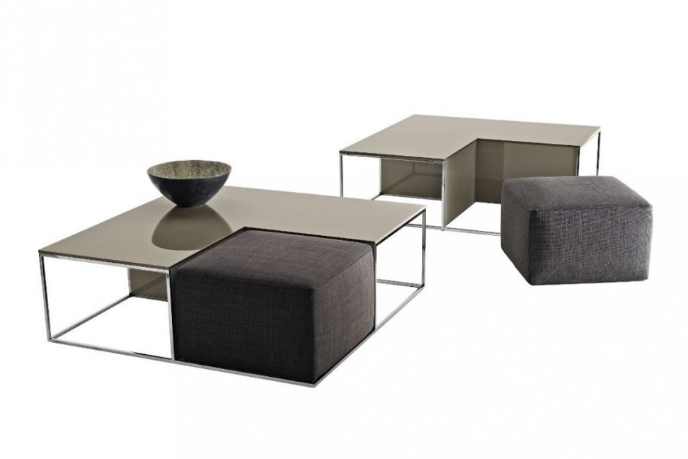 Area è un tavolino basso con doppia funzione: se da una parte fa da piano d'appoggio, dall'altra il pouf fa anche da seduta.