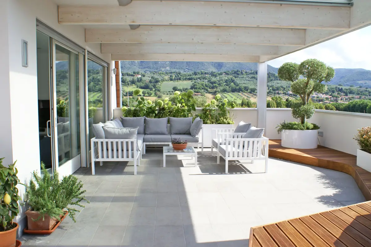 Per progettare uno terrazzo che sia accogliente in tutte le stagioni è necessario fare attenzione ad alcuni elementi. L'inserimento di materiali idonei, l'ombra, e la scelta degli arredi sono dettagli che non possono essere trascurati quando si pensa ad uno spazio esterno.