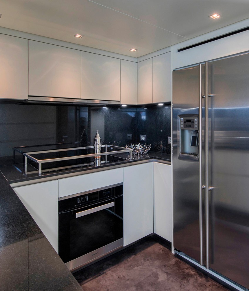 Delle cucine moderne e attrezzate sono essenziali in uno yacht di lusso. Rappresentano la perfetta fusione di eleganza e funzionalità, con elettrodomestici all'avanguardia, superfici eleganti e soluzioni di stoccaggio innovative. Ogni elemento è progettato per garantire efficienza e stile, affinché le avventure culinarie in mare siano tanto piacevoli quanto memorabili.