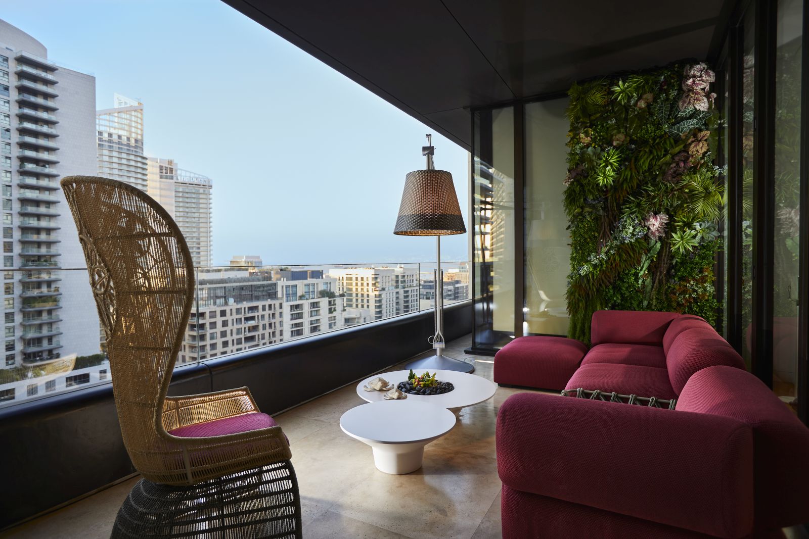 In questo progetto l'atmosfera calda e vitale del Medio Oriente si fonde armoniosamente con il design made in Italy: Edra, B&B Italia Outdoor, Glas Italia, Flos sono alcuni dei brand selezionati nella realizzazione di questa abitazione. L'obietto raggiunto è stata la trasformazione di uno spazio abitativo in un'oasi di comfort e realx dove godersi il clima mediterraneo tutto l'anno.