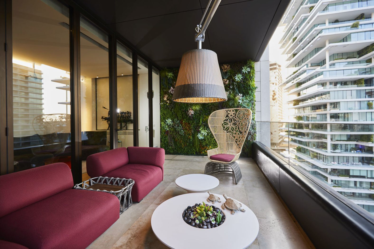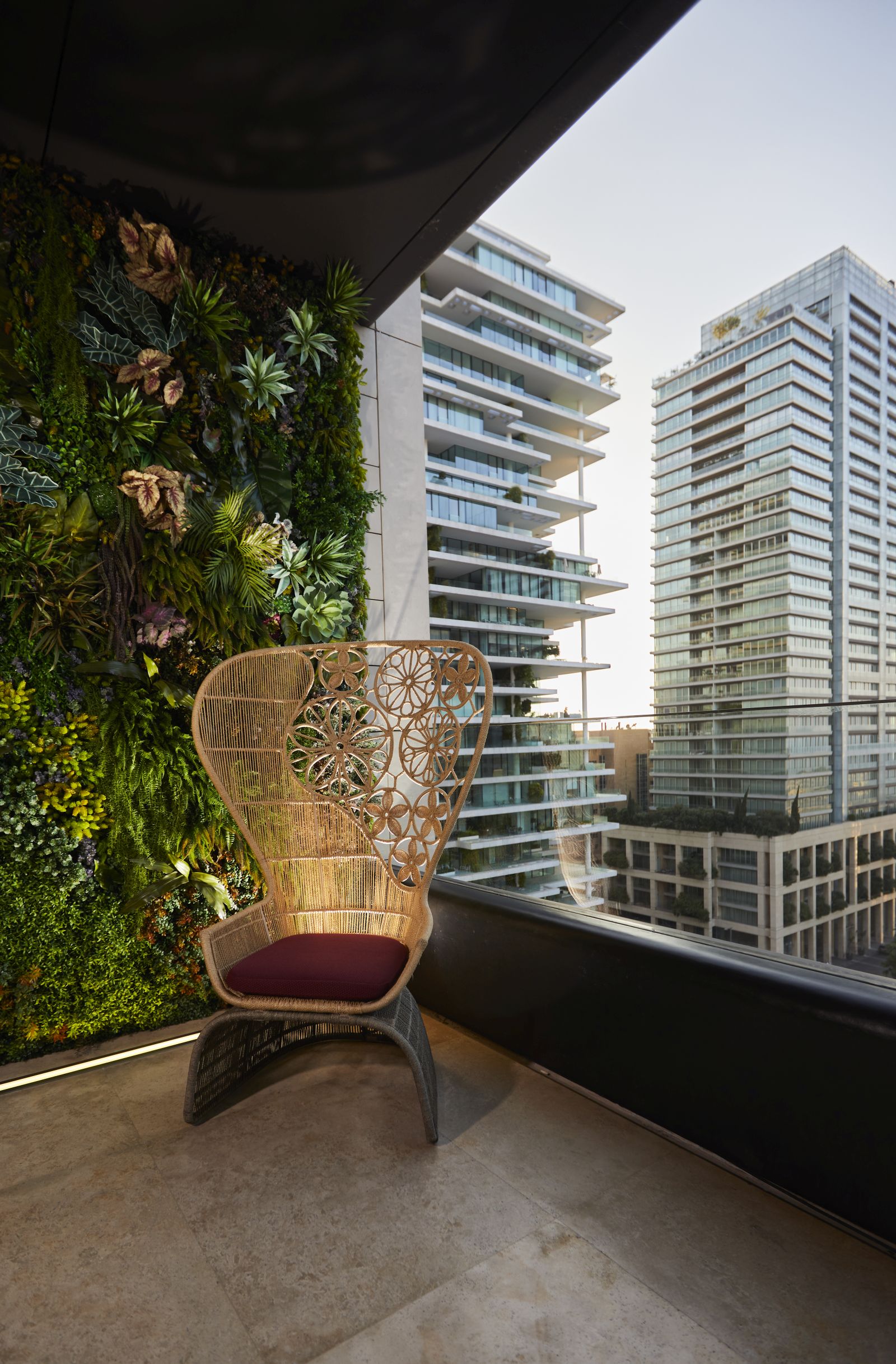 In questo progetto l'atmosfera calda e vitale del Medio Oriente si fonde armoniosamente con il design made in Italy: Edra, B&B Italia Outdoor, Glas Italia, Flos sono alcuni dei brand selezionati nella realizzazione di questa abitazione. L'obietto raggiunto è stata la trasformazione di uno spazio abitativo in un'oasi di comfort e realx dove godersi il clima mediterraneo tutto l'anno.