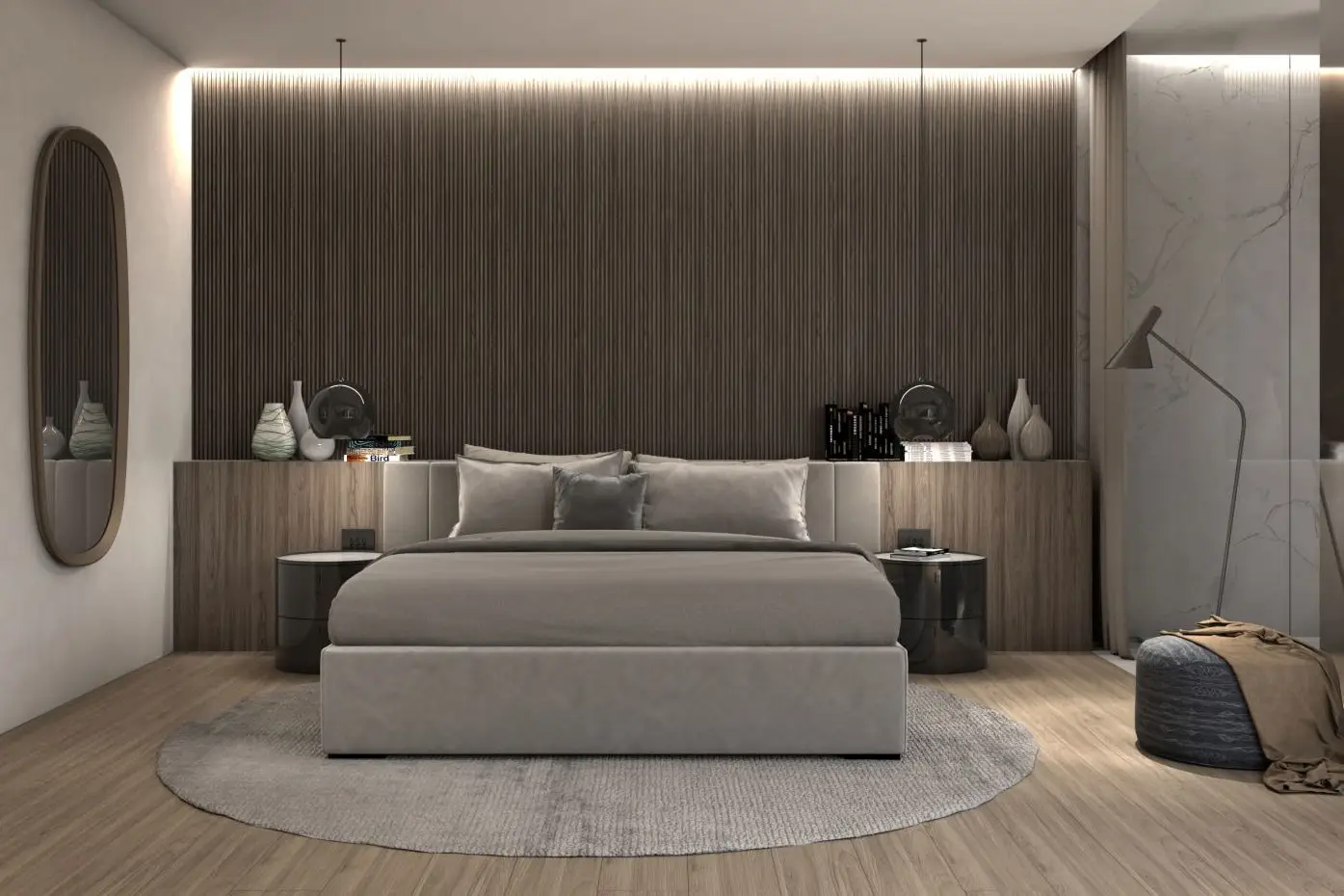 Per garantire l'estetica desiderata, sono stati selezionati gli arredi di Poliform e Edra, caratterizzati da un design distintivo e di qualità. Per illuminare in modo sofisticato gli spazi, sono stati scelti i sistemi di illuminazione di Henge e Flos, perfettamente in linea con il concetto di design contemporaneo che permea tutto l'appartamento.