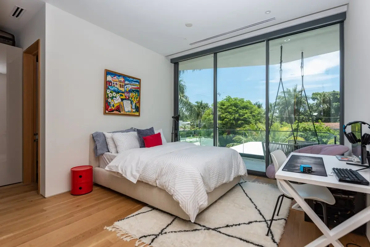 Il fulcro di questo progetto di rinnovamento, al quale Tomassini Arredamenti ha collaborato con entusiasmo, è stata la zona notte composta da tre camere da letto. La camera da letto padronale è un inno al lusso e al comfort, curata in ogni dettaglio. Si distingue per un'ampia vetrata che si affaccia su un terrazzo privato con vista sull'oceano ed è dotata di una spaziosa cabina armadio realizzata su misura e arricchita da un sofisticato sistema di illuminazione. Dominano i colori bianco e corda in tutte le loro sfumature, perfettamente in armonia con la tonalità calda del parquet.