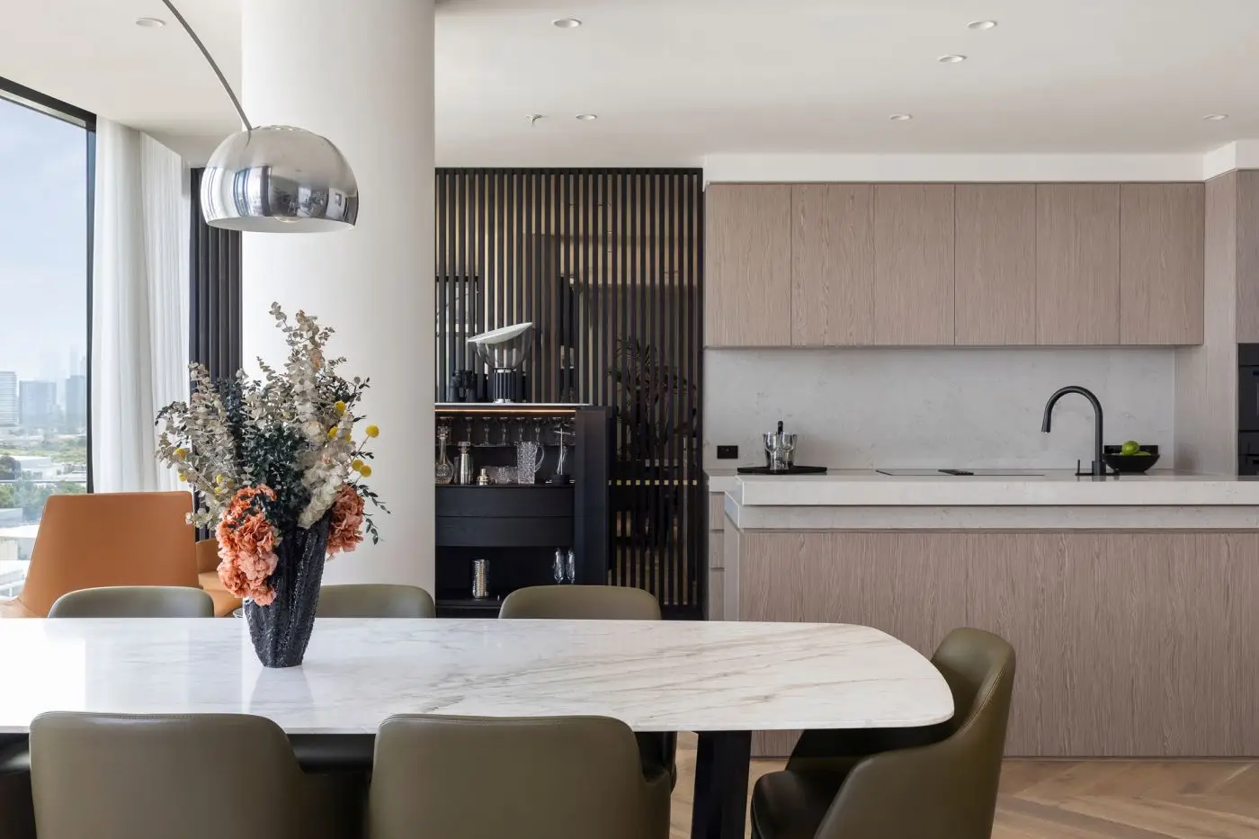 Tomassini Arredamenti ha avuto l'onore di realizzare gli interni di questo raffinato appartamento situato a Melbourne. Una palette di colori tenui ed una grande vetrata illuminano il vasto living, che vede come protagonista il divano modulare Bristol di Poliform. Le pareti bianche e un caldo parquet fungono da tela perfetta per valorizzare tutti gli altri arredi, anch'essi caratterizzati da colori eleganti e neutri.