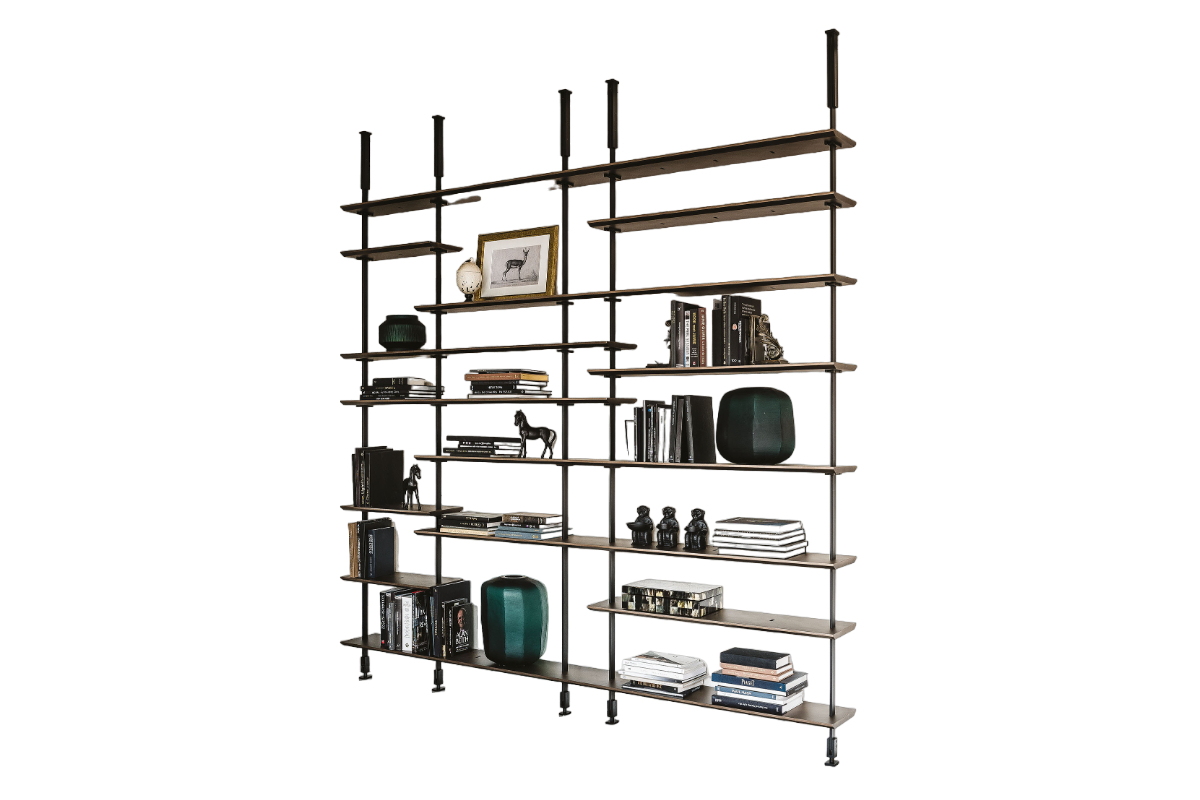 Questo progetto di arredamento vede gli arredi di Poliform come protagonisti indiscussi, accanto alla dinamica libreria di Cattelan Italia e alle eleganti lampade di Flos.
