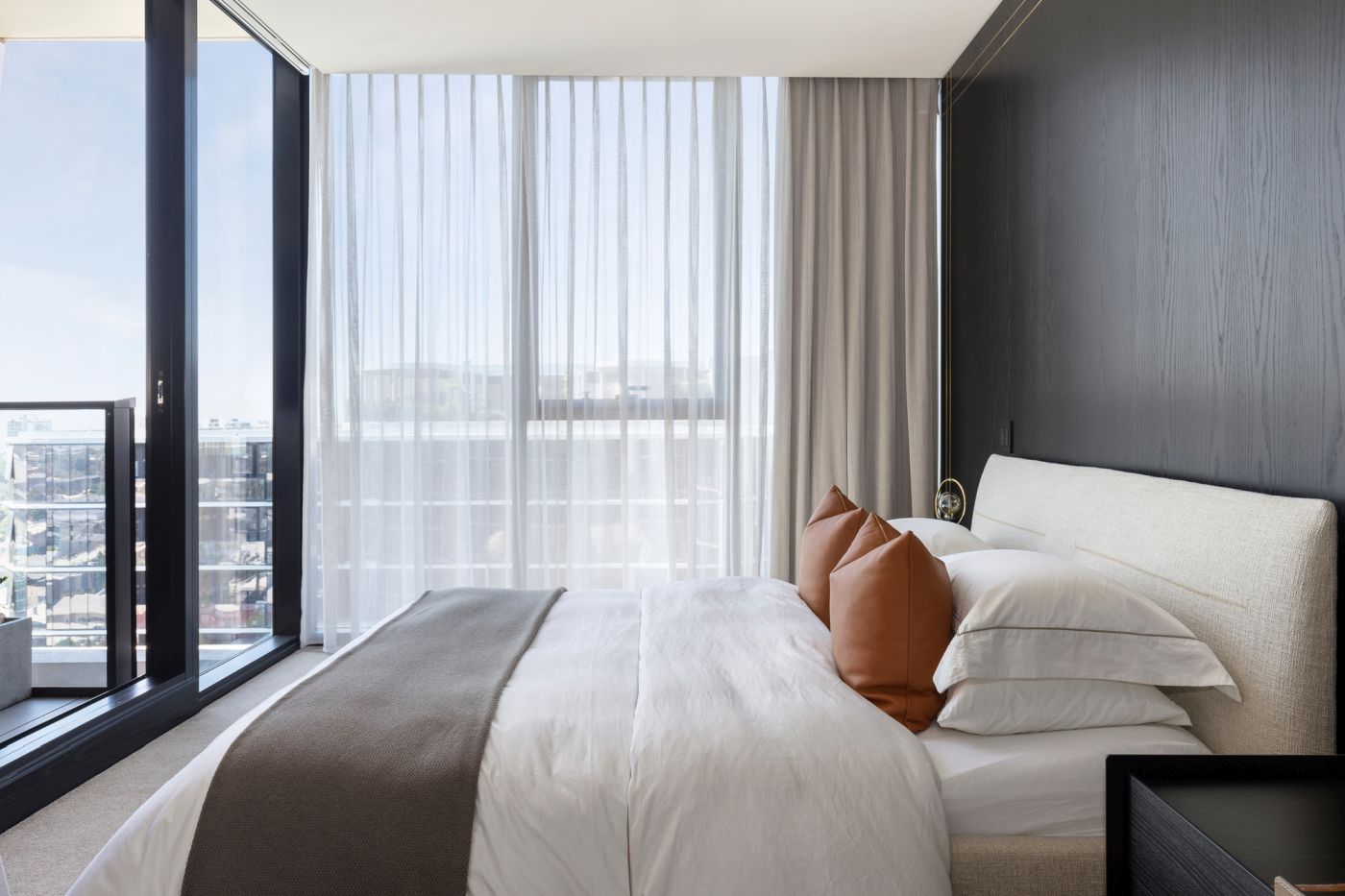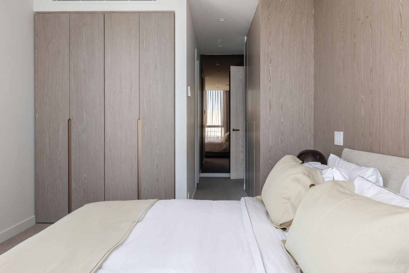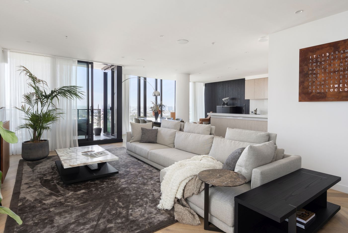Tomassini Arredamenti ha avuto l'onore di realizzare gli interni di questo raffinato appartamento situato a Melbourne. Una palette di colori tenui ed una grande vetrata illuminano il vasto living, che vede come protagonista il divano modulare Bristol di Poliform. Le pareti bianche e un caldo parquet fungono da tela perfetta per valorizzare tutti gli altri arredi, anch'essi caratterizzati da colori eleganti e neutri.