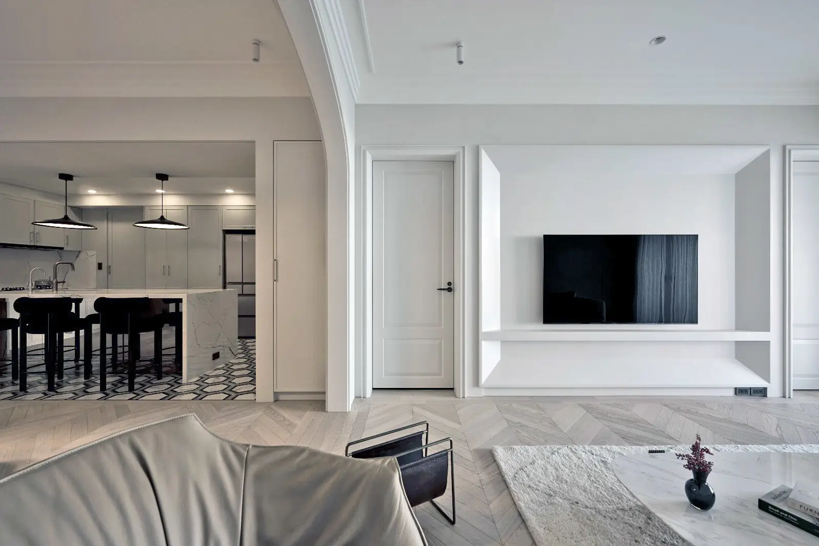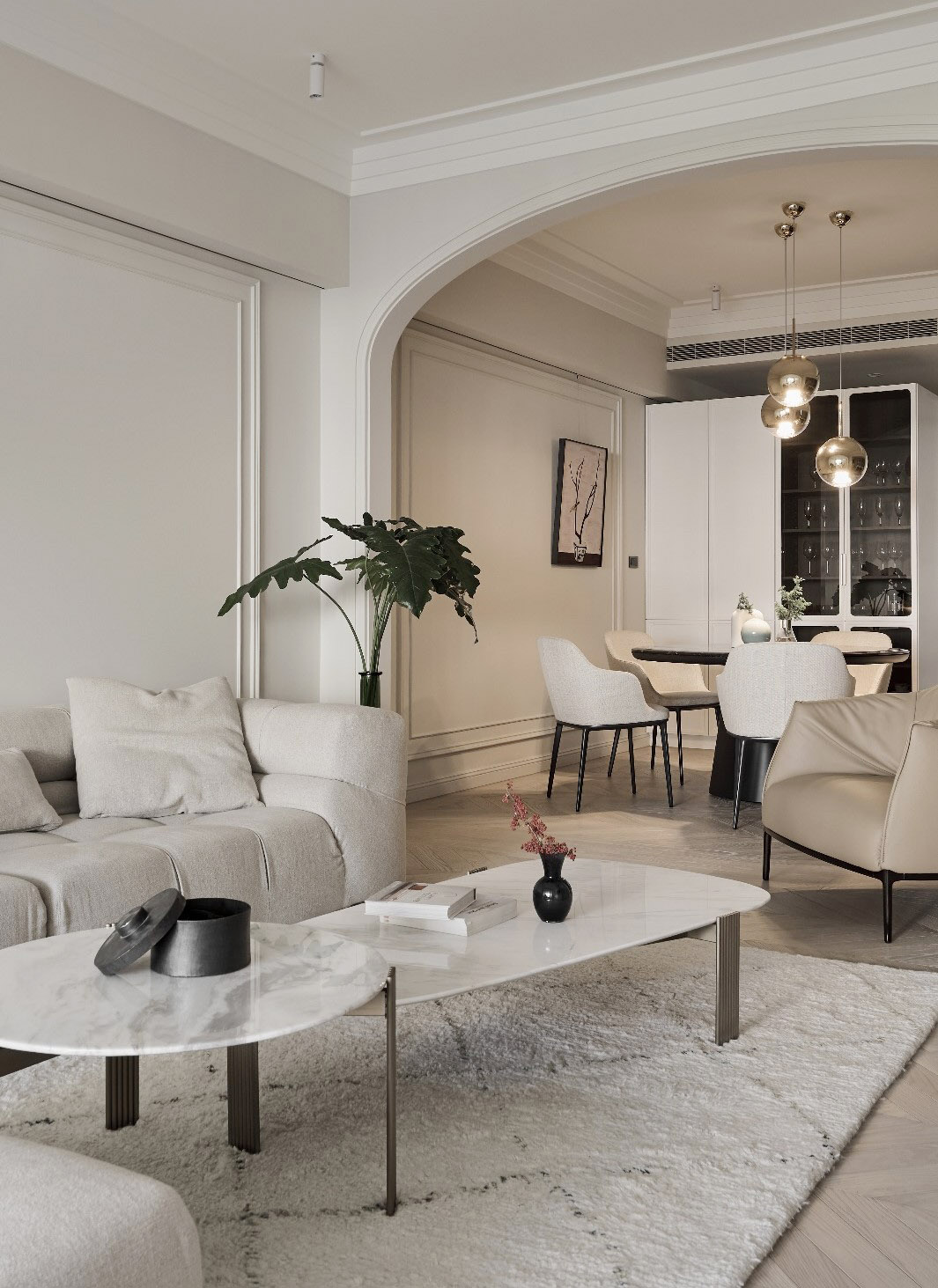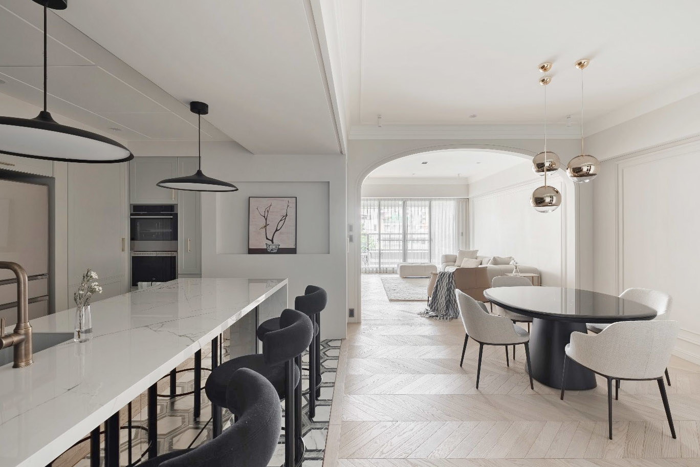Da anni, Tomassini Arredamenti collabora con il rinomato studio di architettura Quan Ju Design Co., Ltd., con sede a Taiwan, portando a termine progetti di qualità e prestigio. In questo appartamento, il colore bianco, declinato in varie sfumature, illumina tutti gli ambienti, contribuendo a creare un'estetica raffinata. Da una palette neutra ma decisamente elegante, prende forma questo progetto di arredamento, dove tonalità come l'ecrù, il beige e il corda dominano con eleganza e raffinatezza.