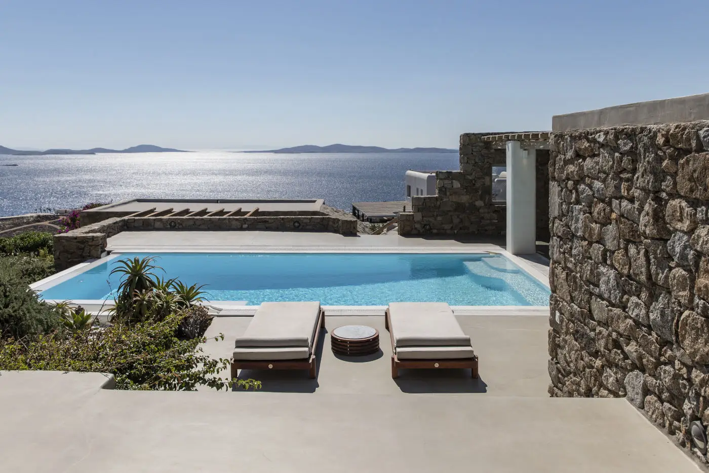 Immersa nell'incantata cornice di Mykonos, questa elegante villa, di sorprendente bellezza, si presenta come una sintesi perfetta fra lusso, architettura, design: tutti elementi armoniosamente integrati con la natura selvaggia e affascinante dell'isola greca.