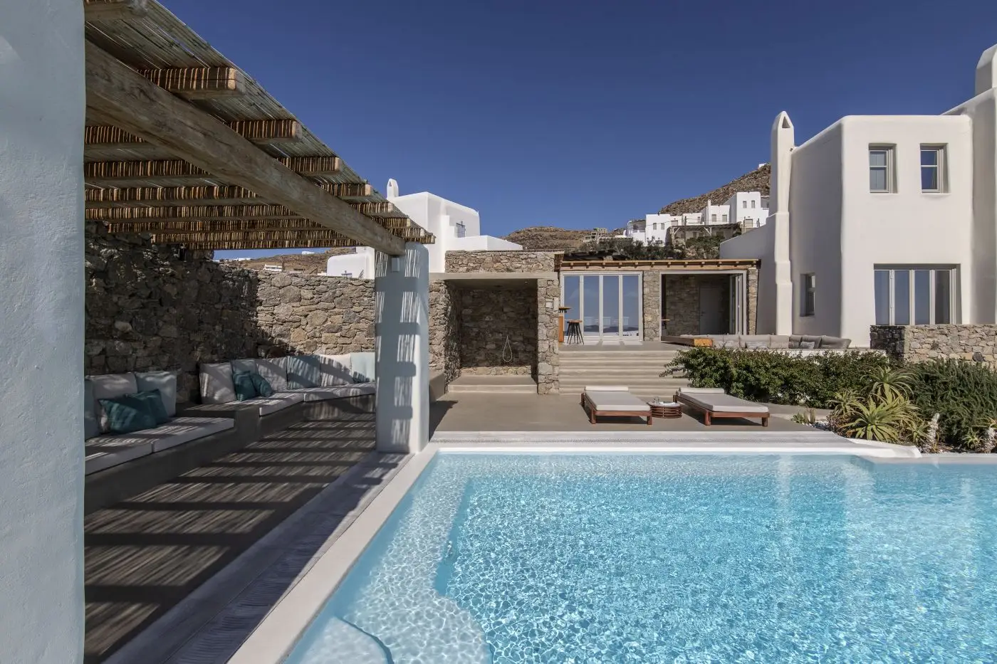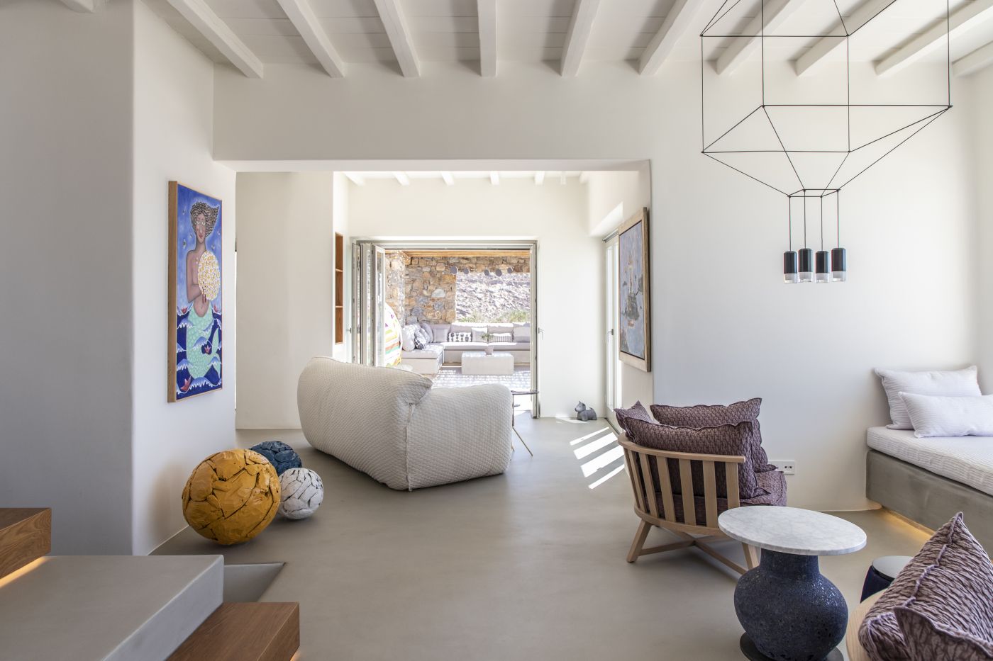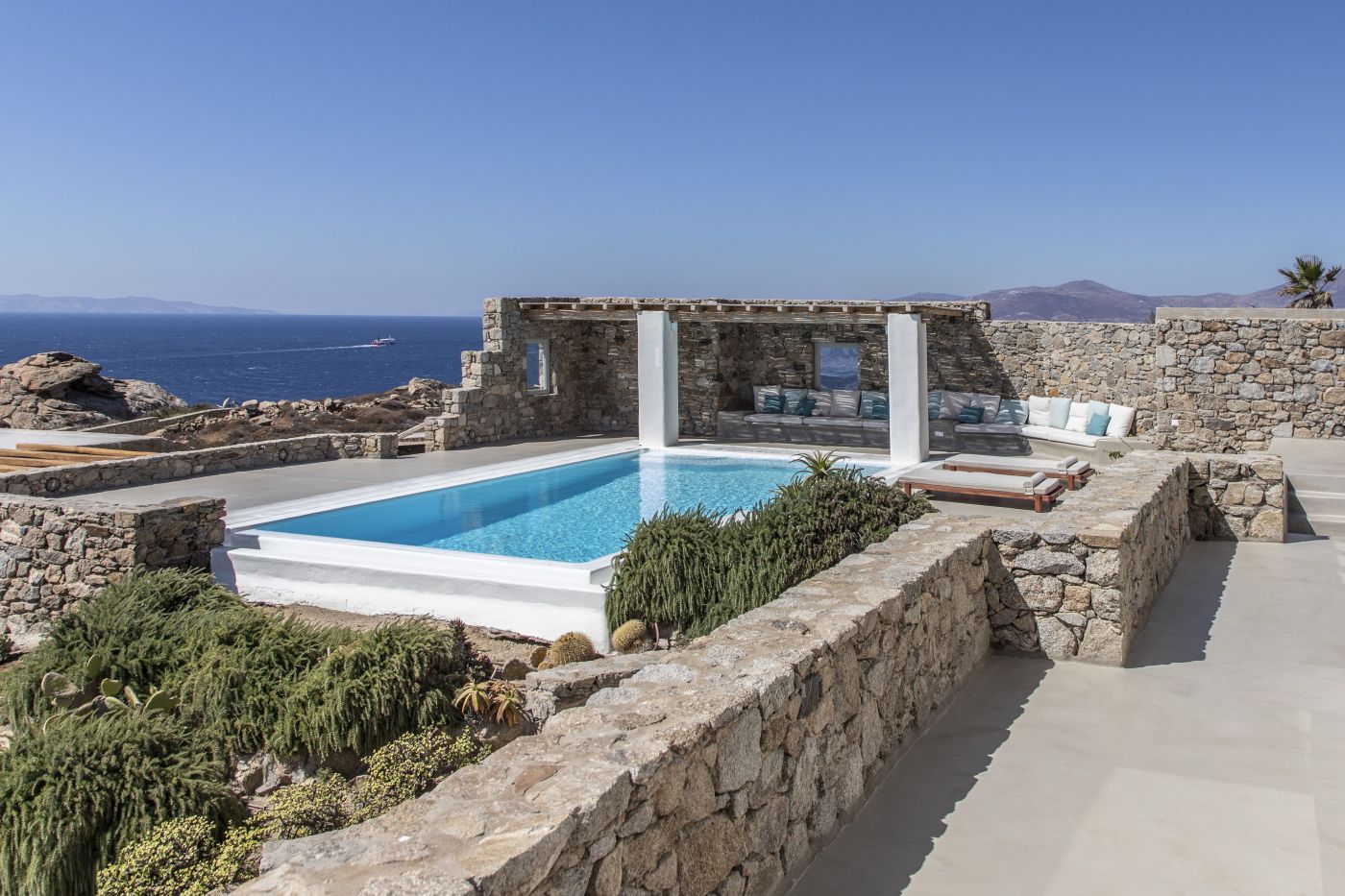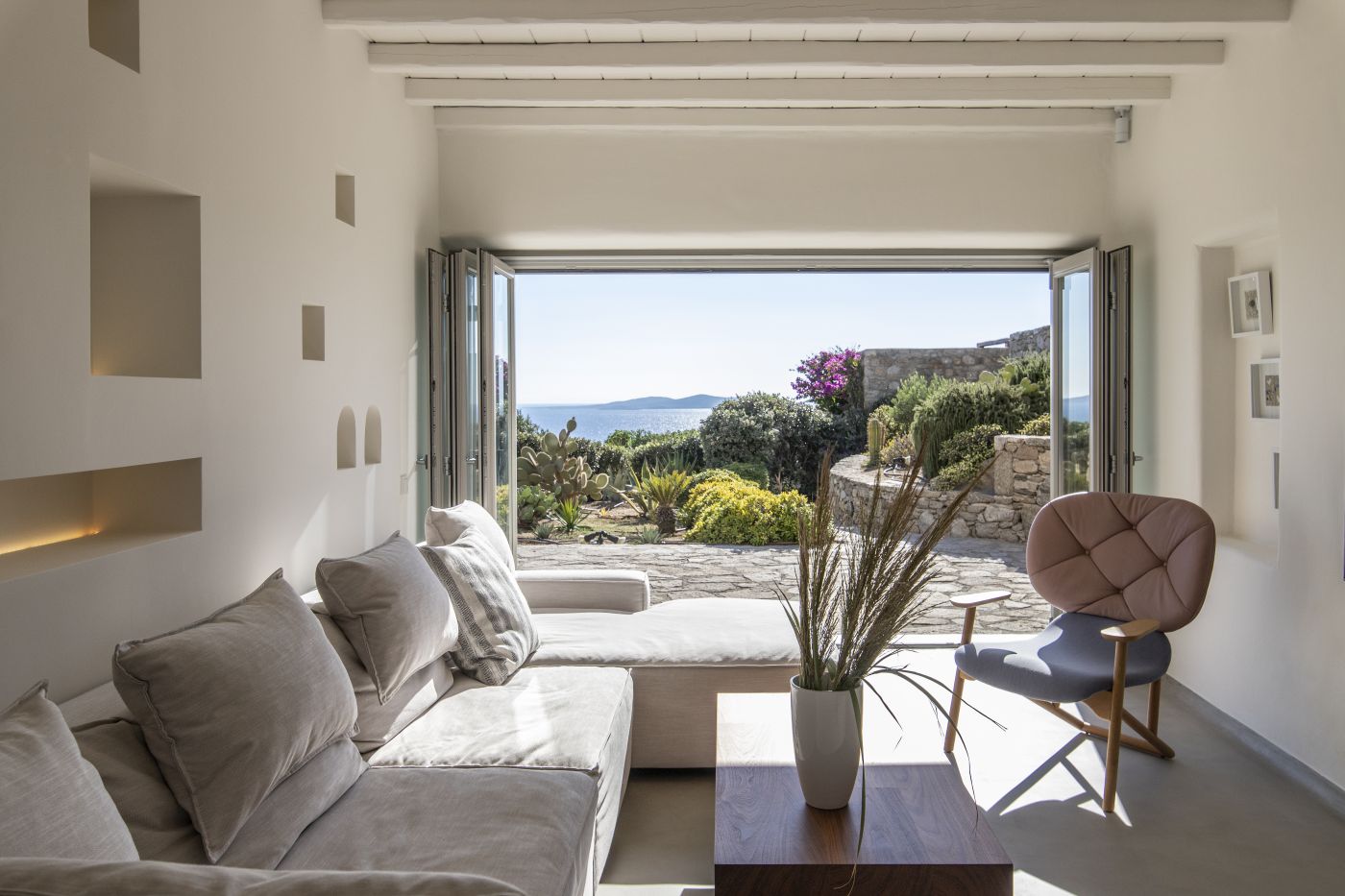 Immersa nell'incantata cornice di Mykonos, questa elegante villa, di sorprendente bellezza, si presenta come una sintesi perfetta fra lusso, architettura, design: tutti elementi armoniosamente integrati con la natura selvaggia e affascinante dell'isola greca.