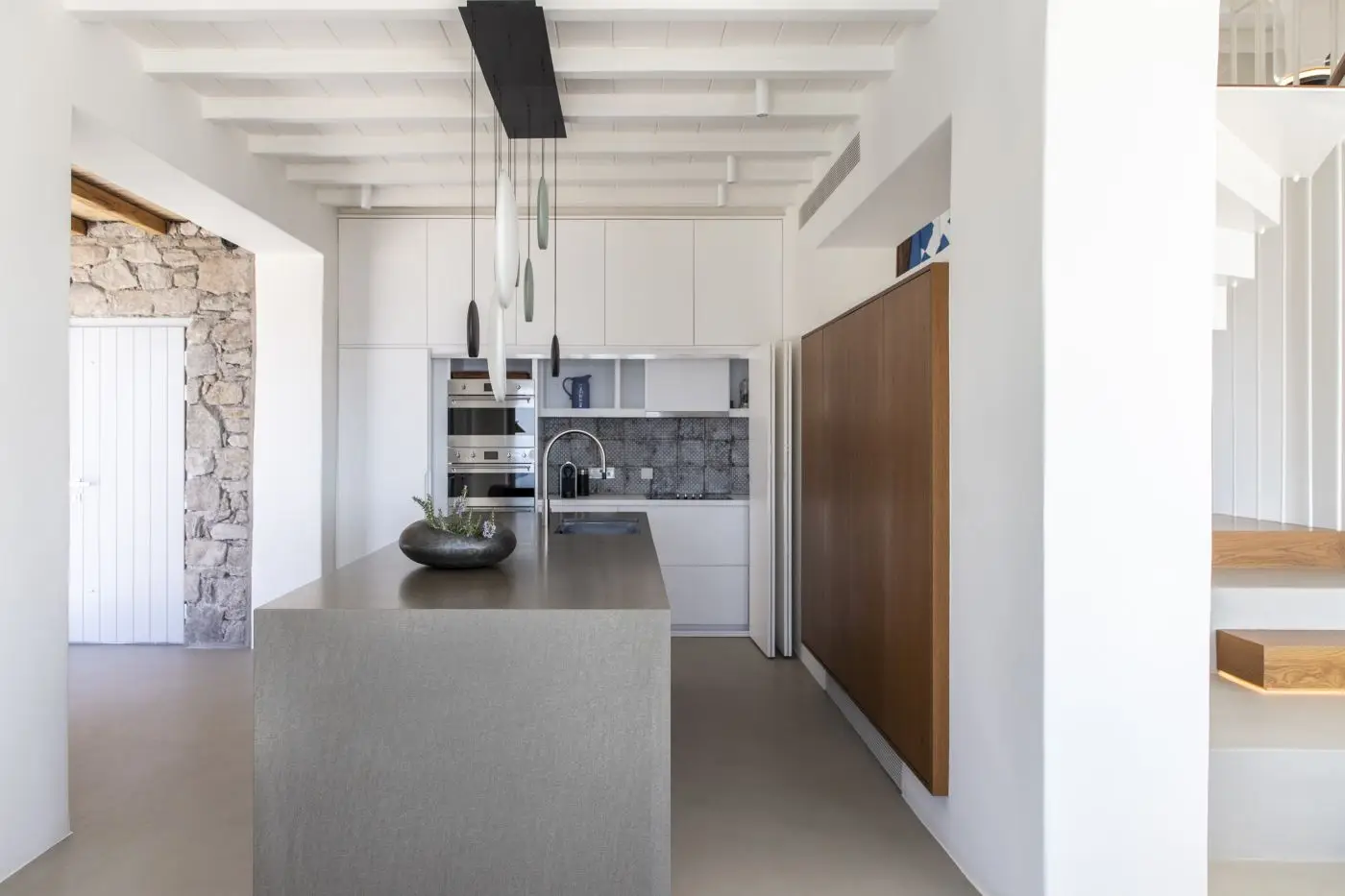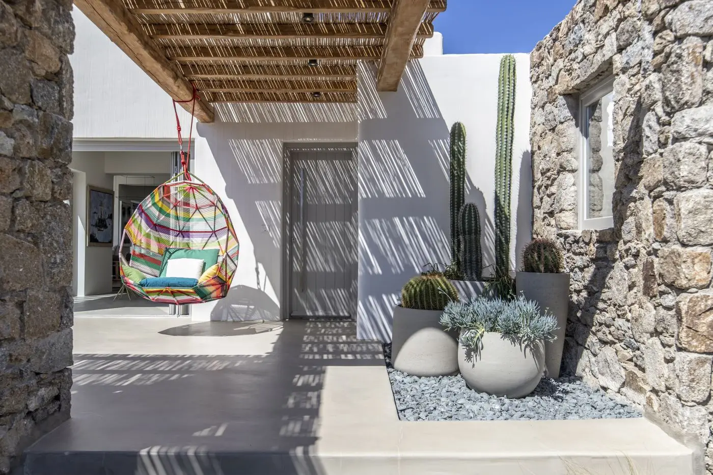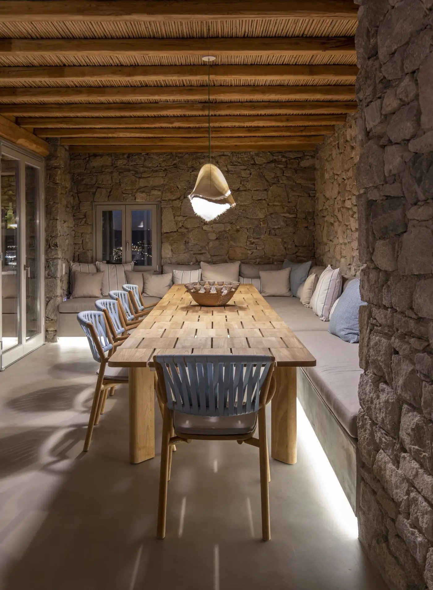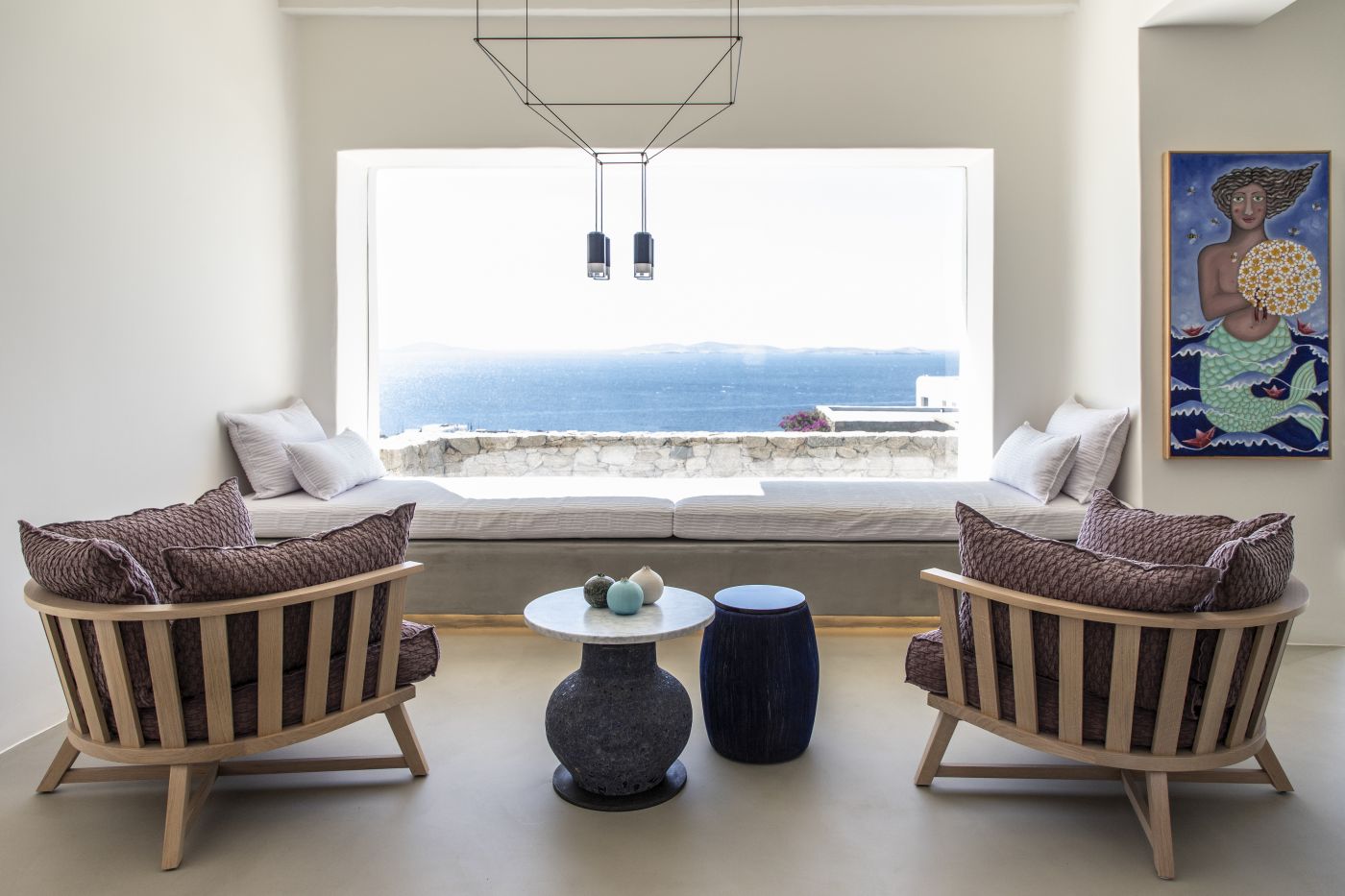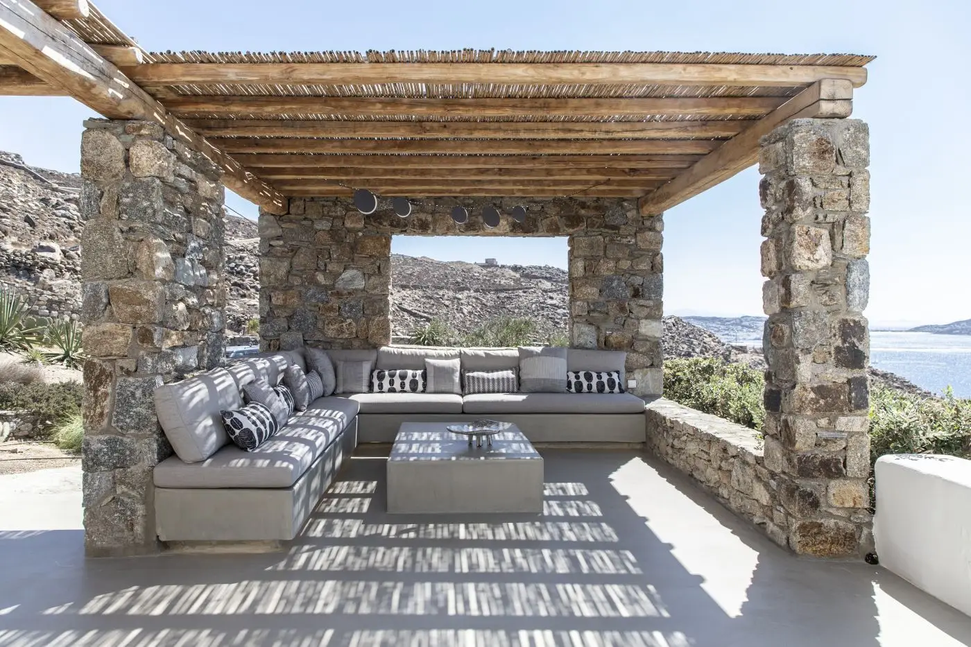 Immersa nell'incantata cornice di Mykonos, questa elegante villa, di sorprendente bellezza, si presenta come una sintesi perfetta fra lusso, architettura, design: tutti elementi armoniosamente integrati con la natura selvaggia e affascinante dell'isola greca.