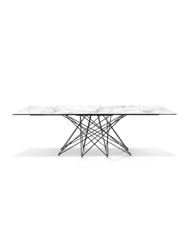 Il tavolo Octa è caratterizzato da una originale base, realizzata con una serie di piccole gambe in metallo cromato.