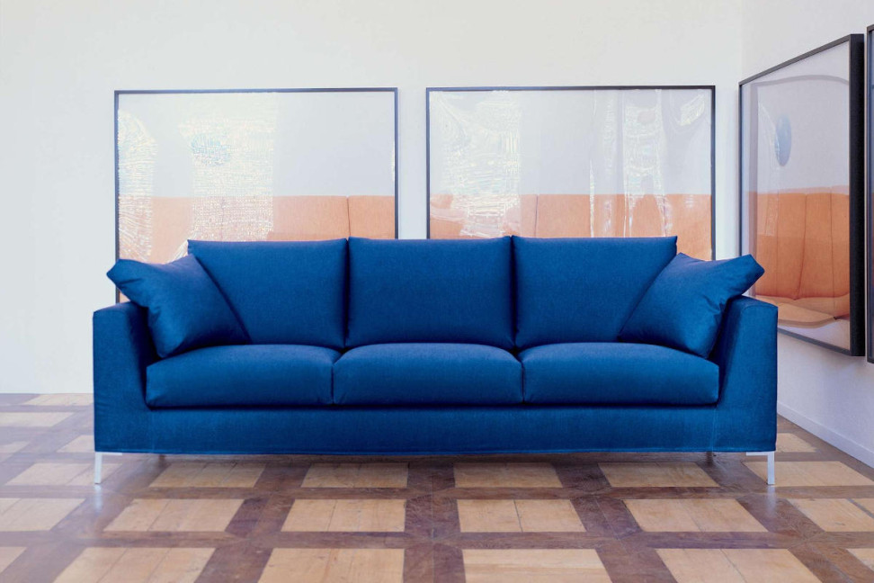 Il divano Aoy di Campeggi, un tre posti maxi con due braccioli, ha piedi in acciaio cromato e una struttura in poliuretano con rivestimento sfoderabile. Disponibile in vari tessuti e colori, il divano offre un design moderno e comfort senza compromessi; con i suoi braccioli eleganti e la base in acciaio cromato, esso combina alla perfezione semplicità e impatto visivo.